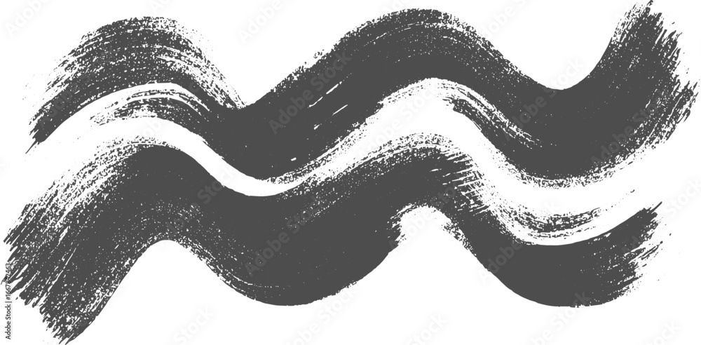 Tableau sur toile Textured dark grey wavy brush strokes across a clean white background