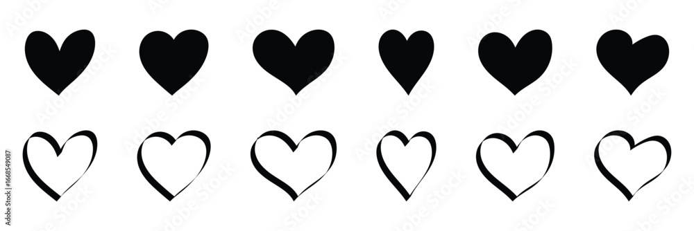 Tableau sur toile Doodle heart, open Heart icon in black and white filled and outline vector, Hear