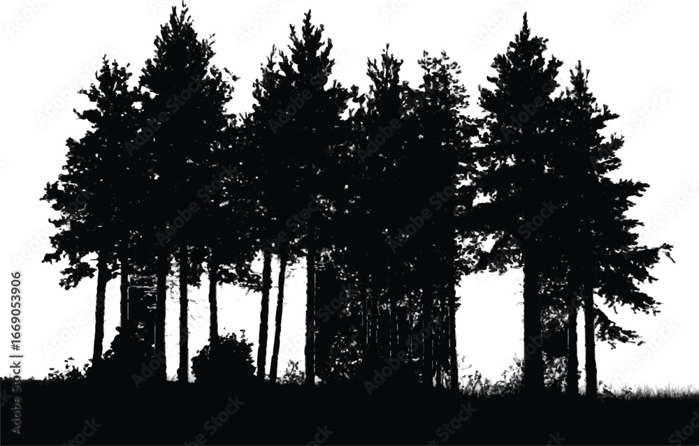 Tableau sur toile minimalist high contrast vector illustration of conifer trees silhouette on gras