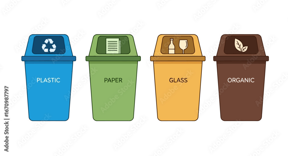 Tableau sur toile Color-Coded Recycling Bins for Waste Sorting and Management in Homes, Offices, a