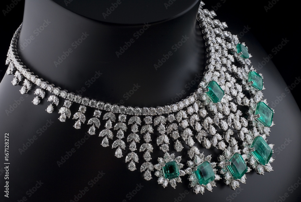 Tableau sur toile Diamonds necklace with green stones