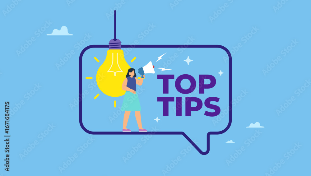 Tableau sur toile Woman talk on megaphone on top tips speech bubble