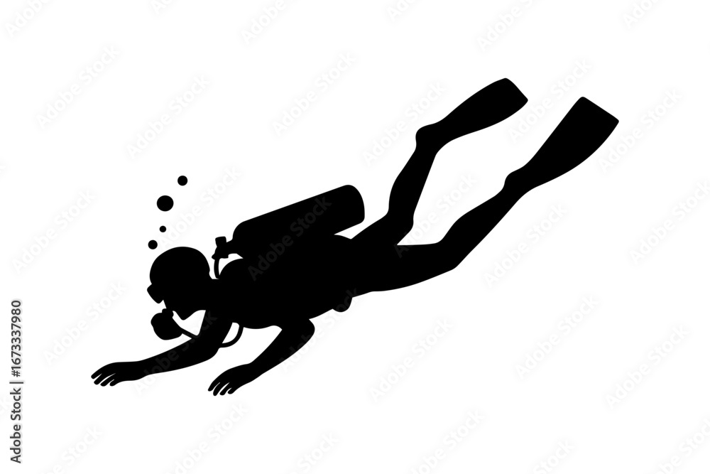 Tableau sur toile Silhouette of a scuba diver swimming underwater