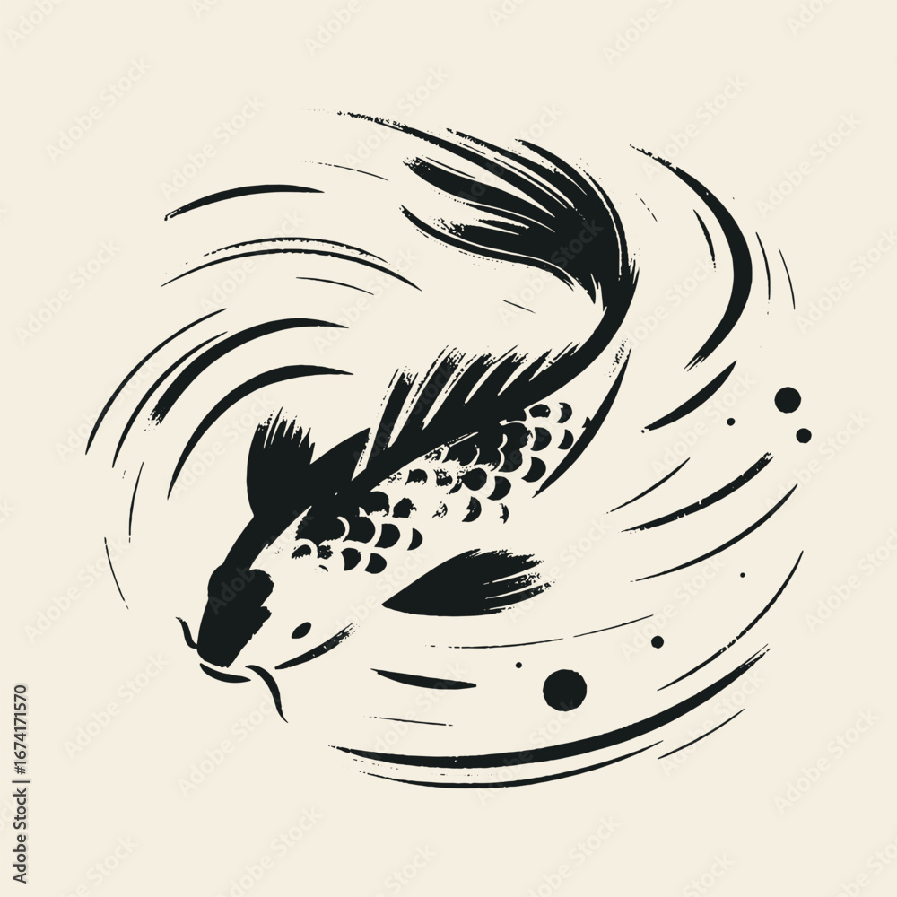 Tableau sur toile Koi fish brushstroke black ink sketch vector illustration
