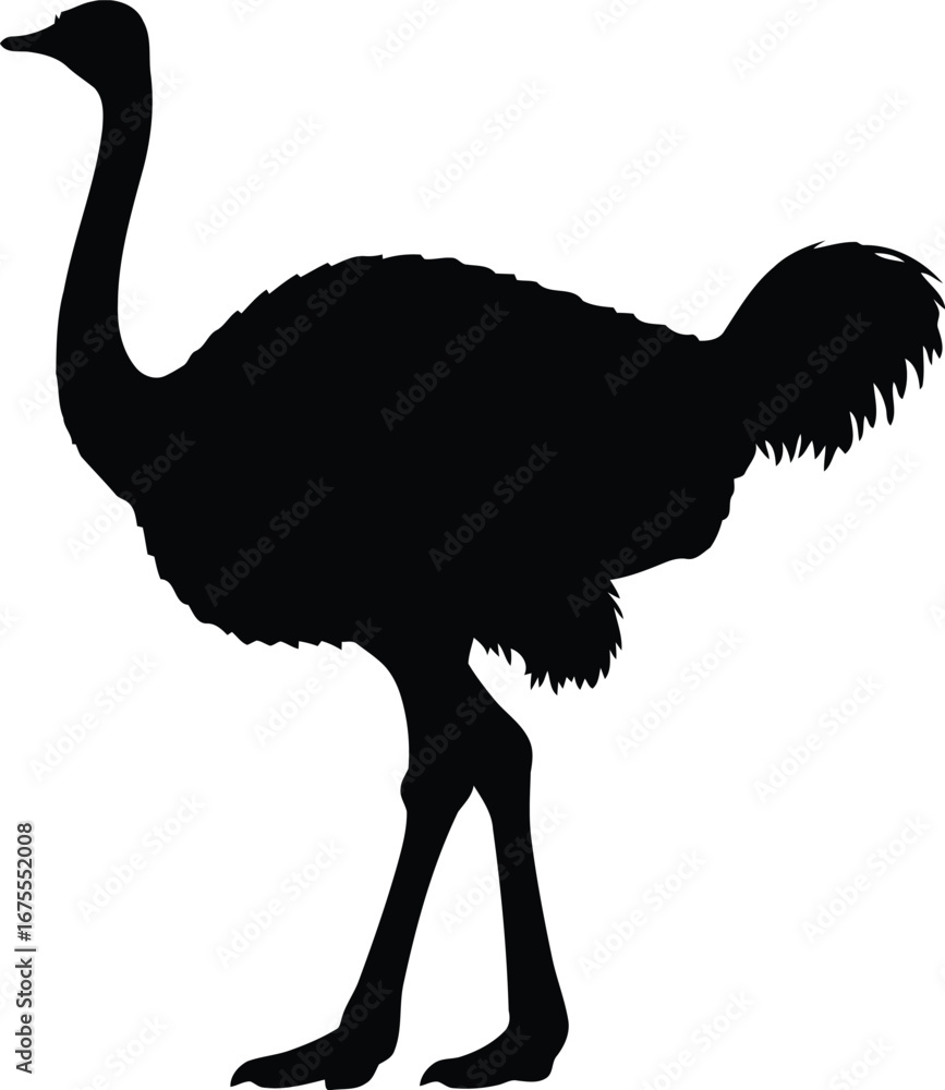 Tableau sur toile Silhouette of a majestic ostrich standing proudly side profile vector