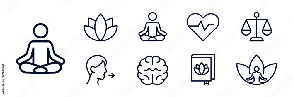 Tableau sur toile Mental health outline icon set, vector pack for wellbeing and psychology