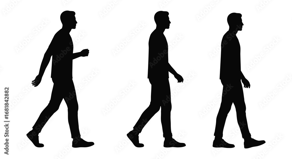 Tableau sur toile Silhouette of a man walking in different positions from side view