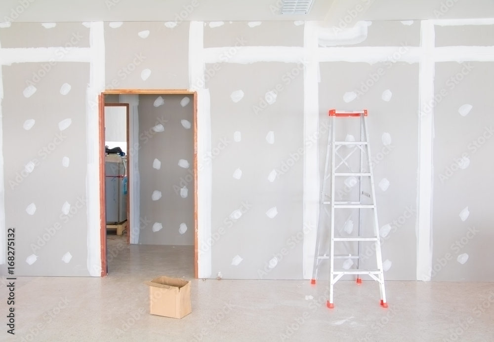 Tableau sur toile stair and gypsum board wall interior decoration of home at construction site wit