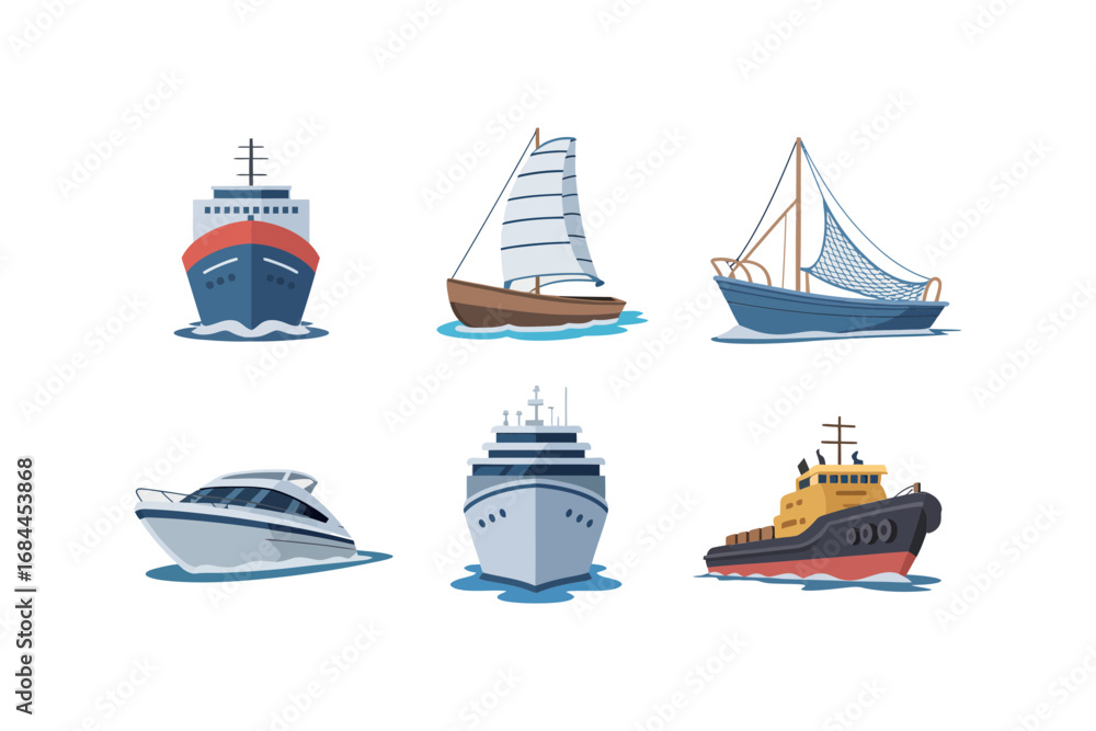 Tableau sur toile Modern yacht vector illustrations, luxury boat icons, cruise ship graphics, ocea