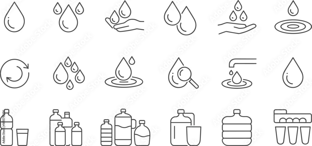 Tableau sur toile Water drop icons, clean water line symbols, hydration signs, eco water vector se