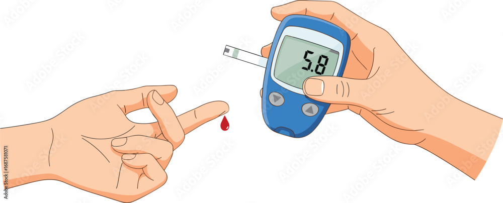 Tableau sur toile Hand checking blood sugar with glucometer, diabetes test illustration, medical d