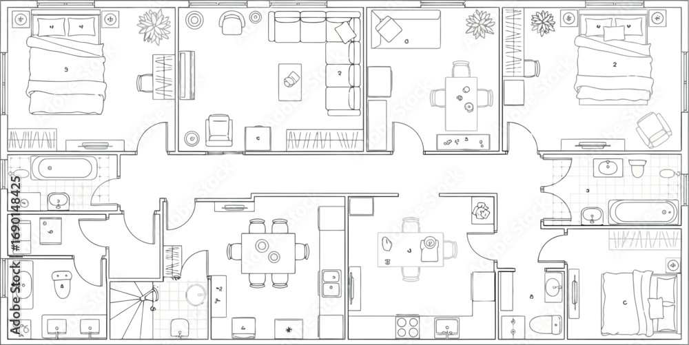 Tableau sur toile Vector vector art of architectural blueprint of a modern apartment floor plan wi