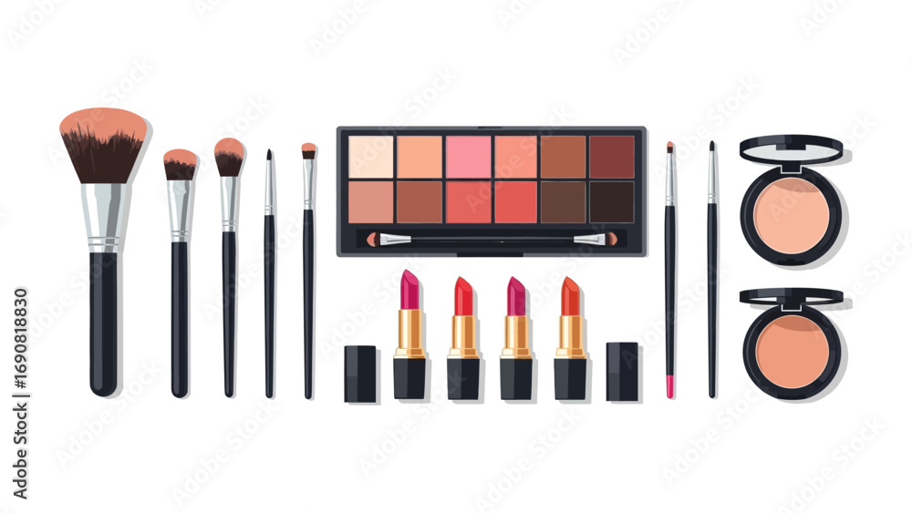 Tableau sur toile A comprehensive collection of professional makeup artist tools including brushes