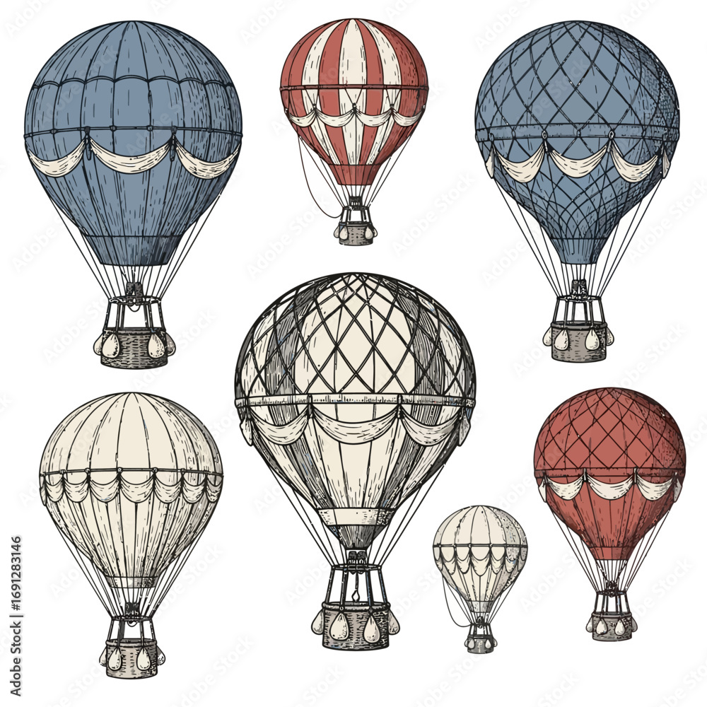 Tableau sur toile Vintage Hot Air Balloons Collection: Hand-Drawn Illustrations