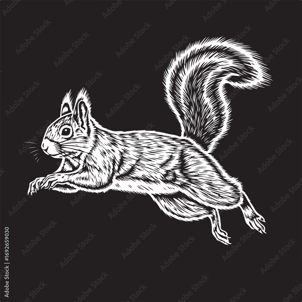 Tableau sur toile Squirrel in mid-leap on a black background Keywords: squirrel, animal, wildlife,