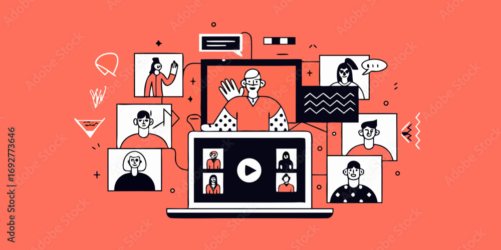 Tableau sur toile Diverse group of people participating in a video conference call on a laptop scr