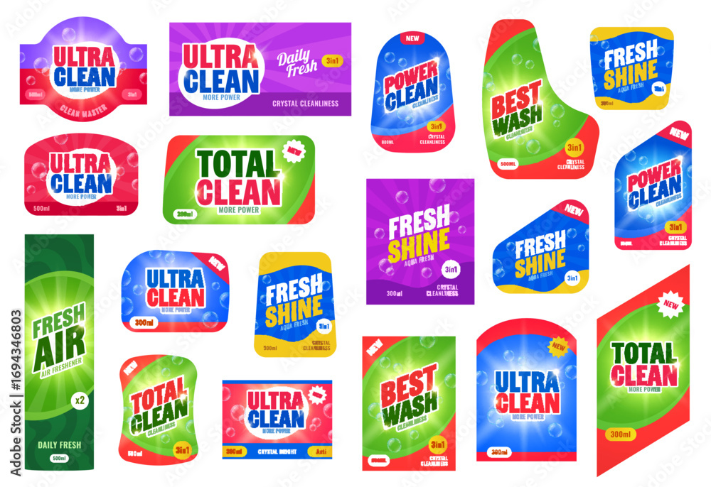 Tableau sur toile Label of cleanser, liquid soap and detergent packages