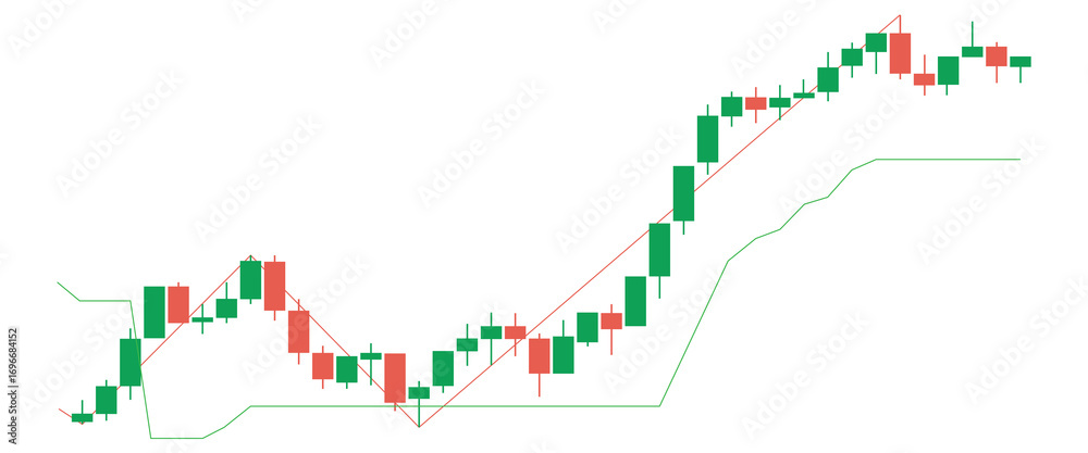 Tableau sur toile Green and red candlestick chart showing an uptrend isolated on transparent backg
