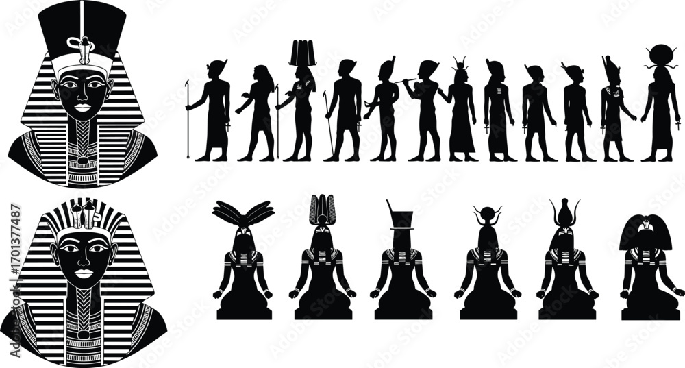 Tableau sur toile Ancient Egypt, pharaoh silhouette, Egyptian gods, deity icons, mythology art, bl