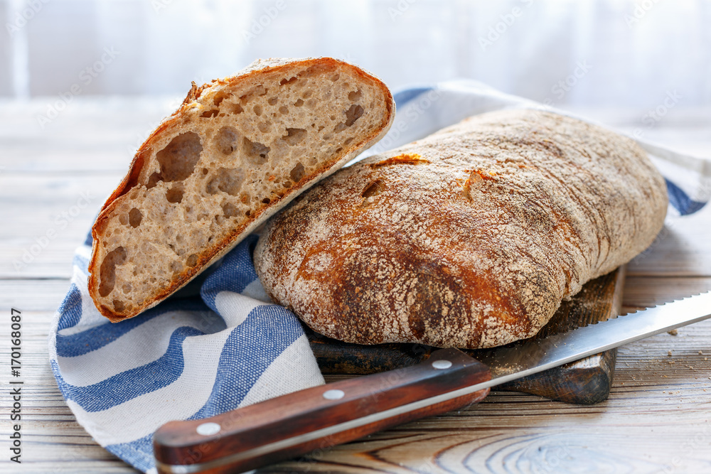 Tableau sur toile Homemade ciabatta with whole grain rye flour for sourdough.