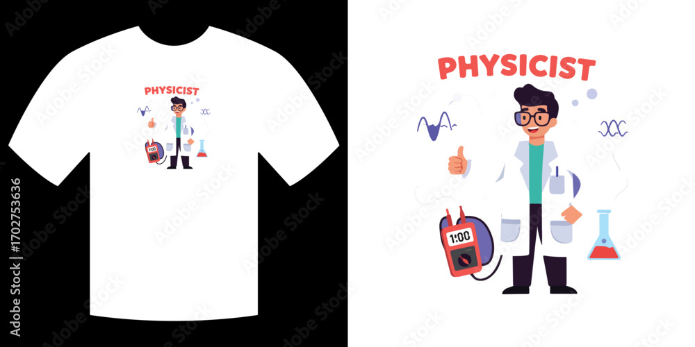 Tableau sur toile Science Enthusiast: A graphic tee design showcasing an illustrative physicist surrounded by lab equipment and scientific symbols, embodying the spirit of inquiry and discovery
