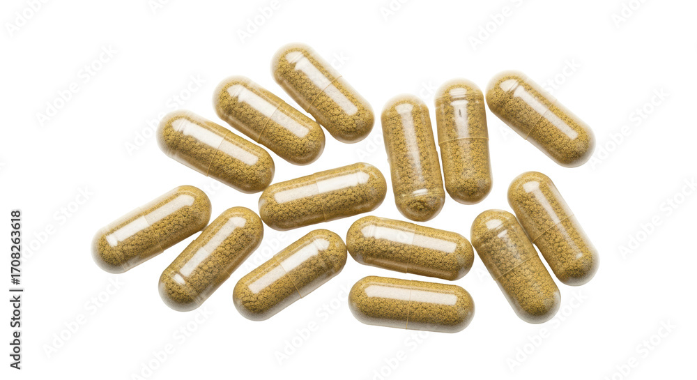 Tableau sur toile Isolated medicinal capsules containing herbal supplement ingredient, holistic he