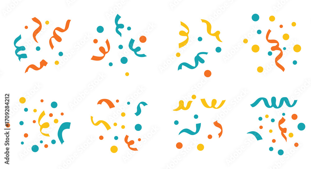Tableau sur toile Colorful confetti and streamers scattered across a plain white background