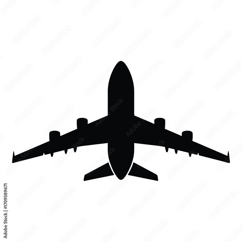 Tableau sur toile Silhouette of a modern passenger jet airplane flying in flight overhead view sil
