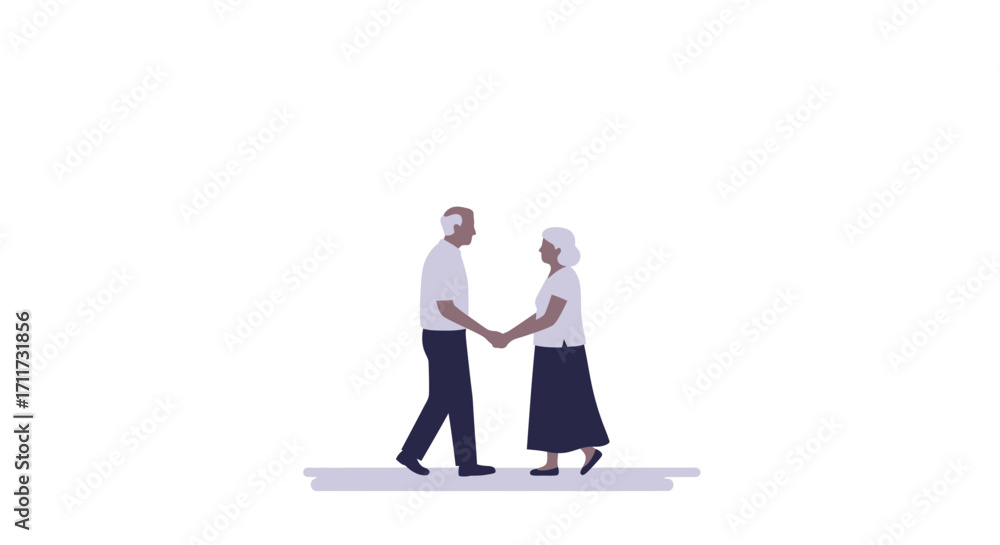 Tableau sur toile Elderly couple holding hands walking together romance cherished moments
