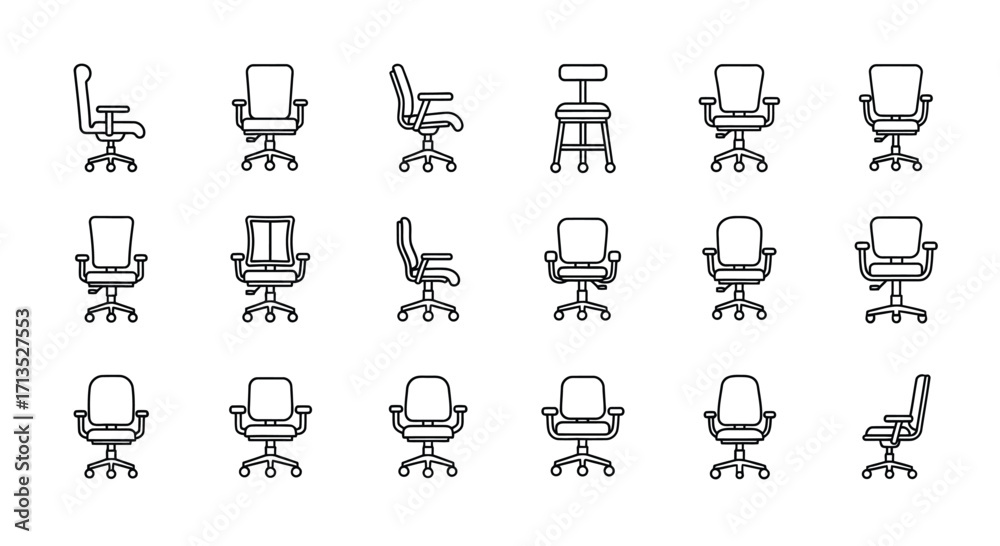 Tableau sur toile Collection of office swivel chairs in various styles and angles for modern works