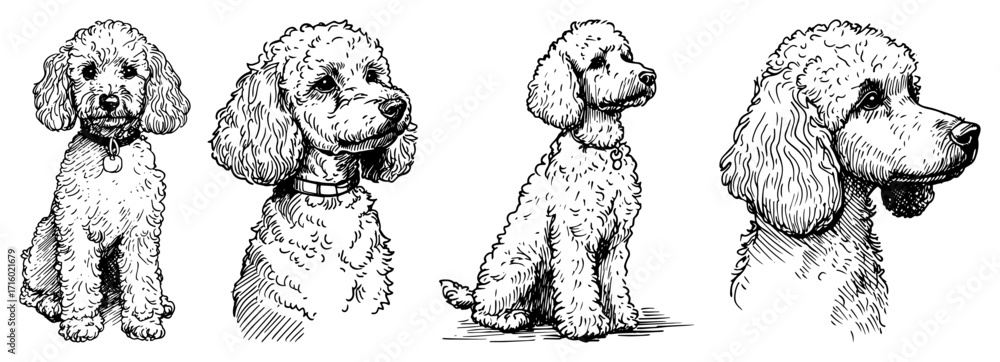 Tableau sur toile Hand Drawn Poodle Dog Portraits Vector Set