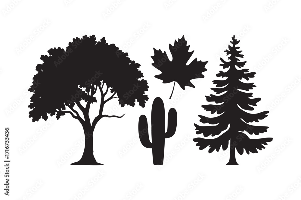 Tableau sur toile Silhouettes of diverse trees and a cactus