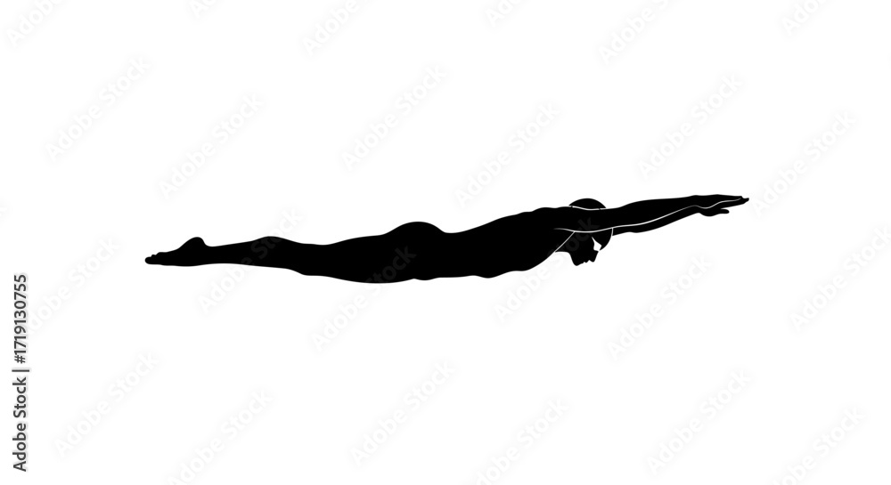 Tableau sur toile Silhouette of a person swimming arms outstretched legs extended in a prone posit