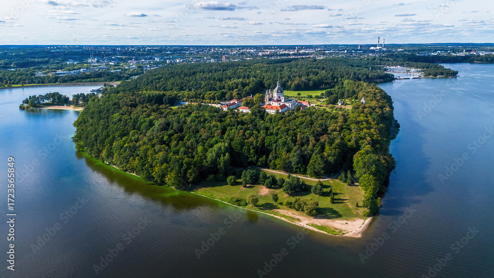 Tableau sur toile Aerial view of the Pažaislis Monastery located on a peninsula in the Kaunas Rese