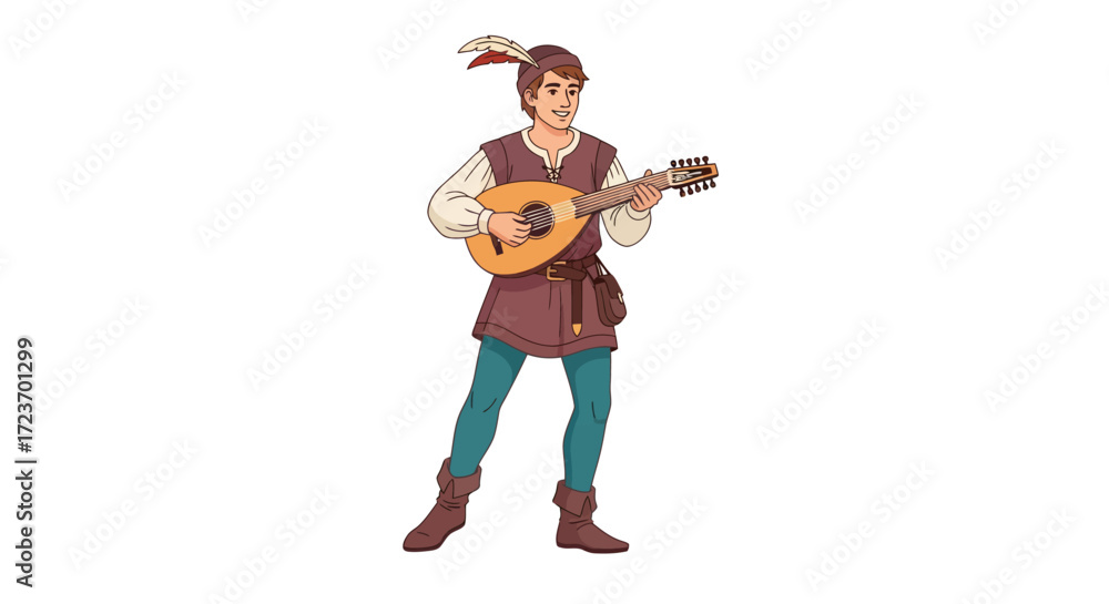 Tableau sur toile A medieval minstrel or bard in historical costume playing a lute.