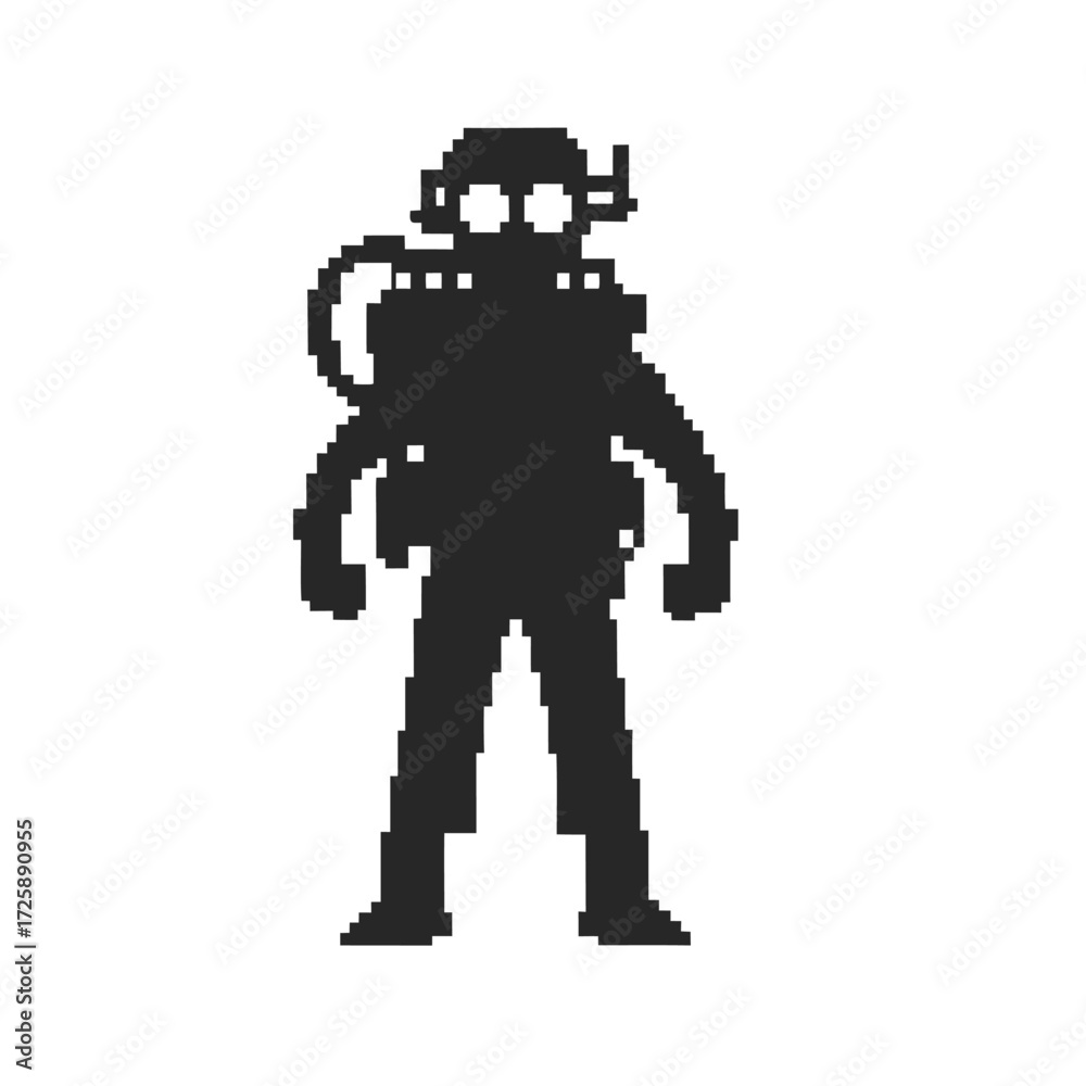 Tableau sur toile Pixelated silhouette shows a diver wearing scuba gear standing still in digital