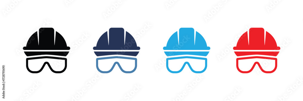 Tableau sur toile Set of four safety hard hats and goggles icons in black, navy blue, light blue,