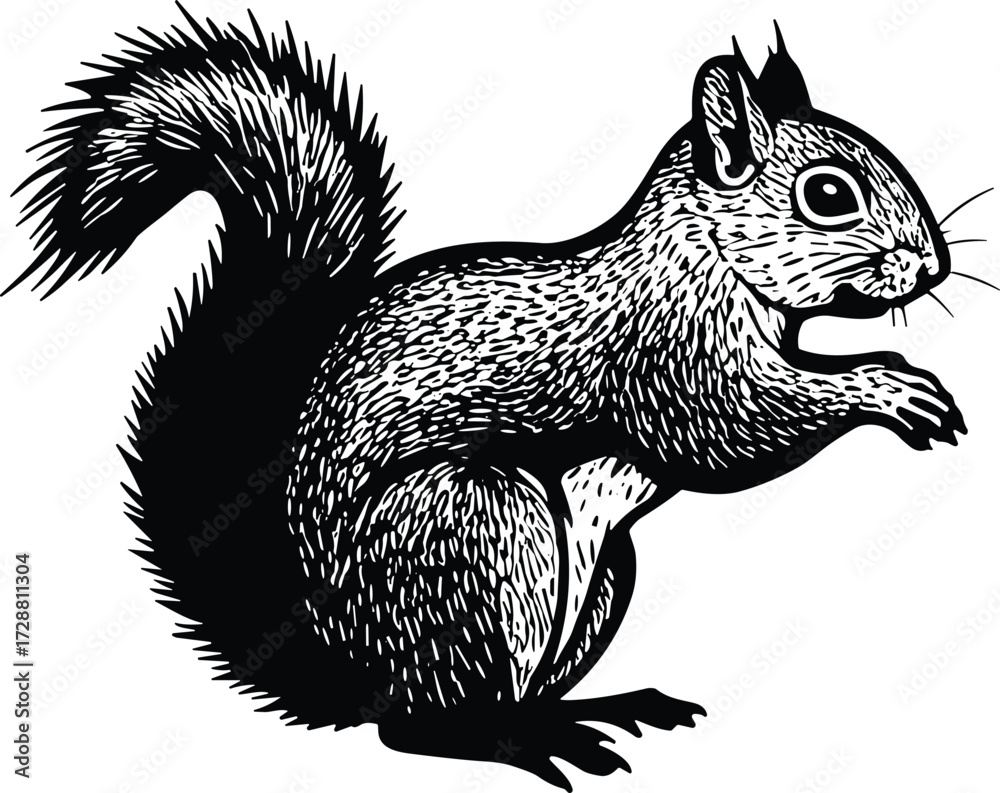 Tableau sur toile and white squirrel illustration, detailed wildlife drawing, vintage animal sket