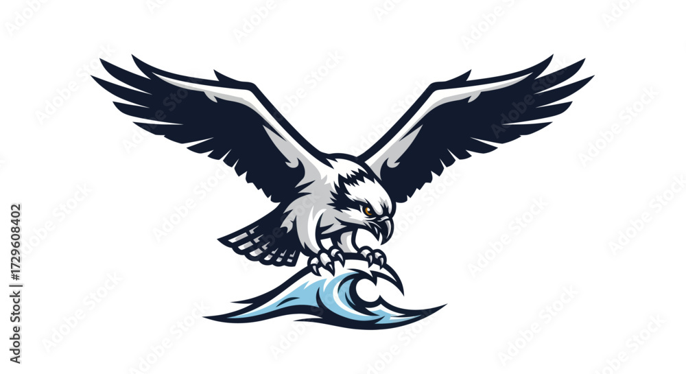 Tableau sur toile Powerful Osprey Mascot Vector Illustration with Fish Prey.