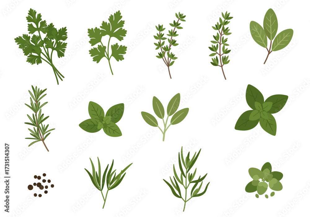 Tableau sur toile Assorted herbs spices illustration parsley thyme sage rosemary basil pepper
