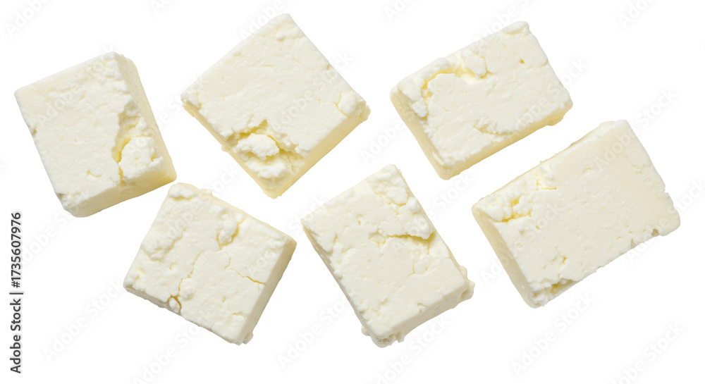 Tableau sur toile Fresh feta cheese cubes isolated on transparent background, traditional Greek da