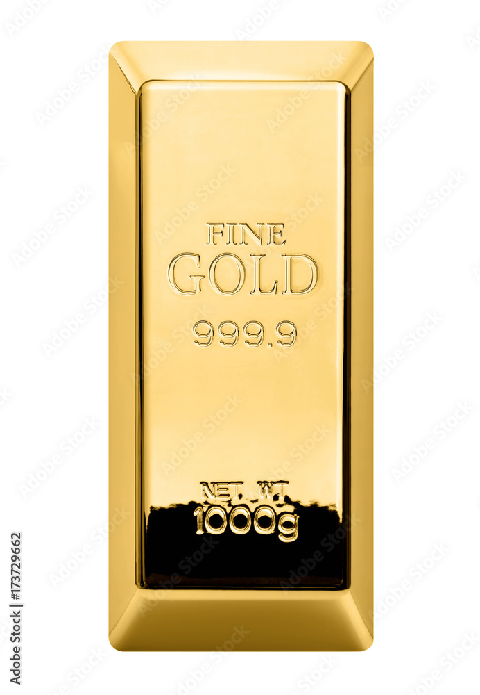 Tableau sur toile Gold bar isolated on white background. Gold bullion top view.