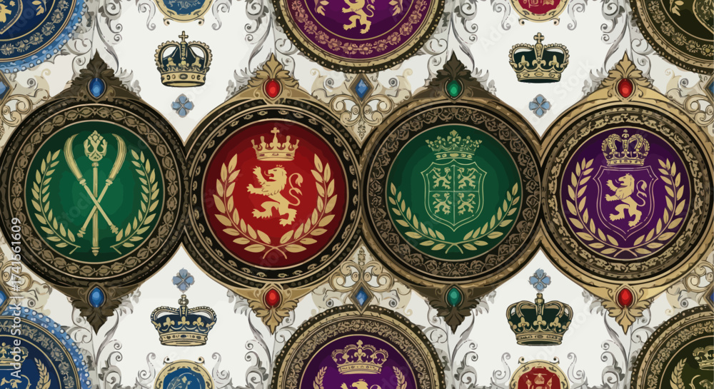 Tableau sur toile Royal crests, crowns, and flourishes repeating pattern