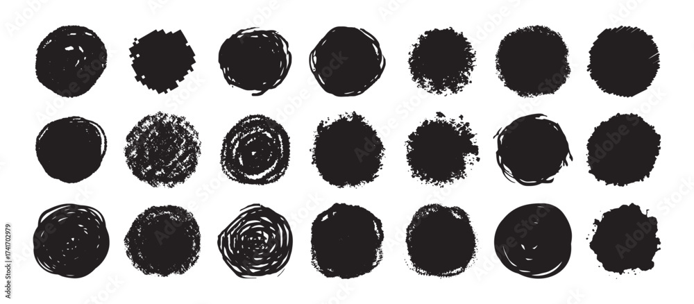 Tableau sur toile Round grunge scratch and textured ink brush strokes set