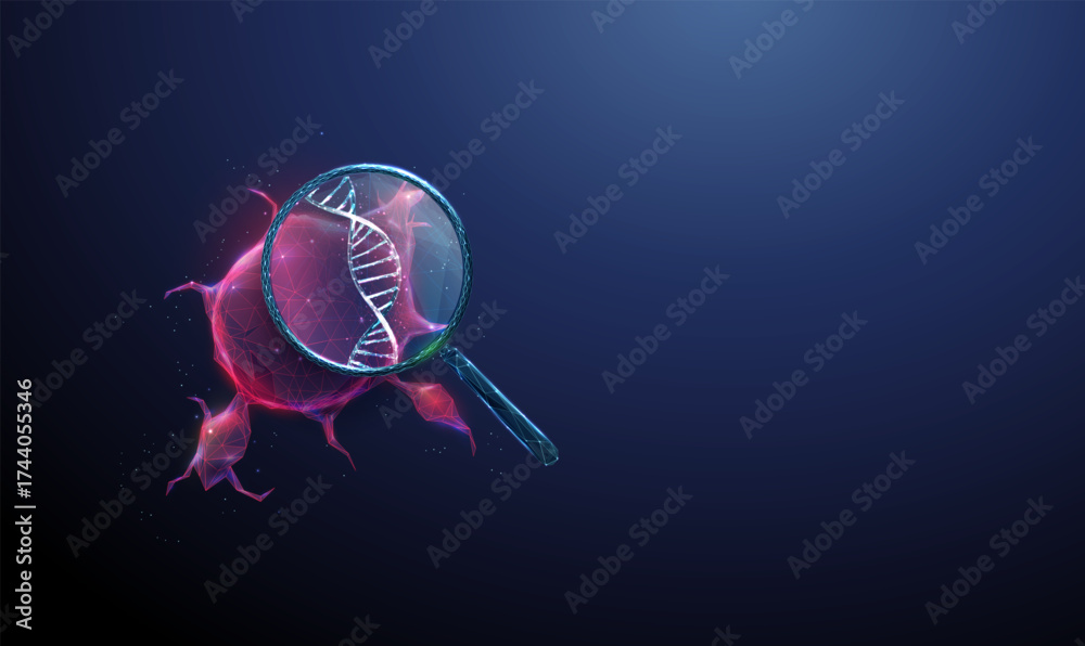 Tableau sur toile Red tumor under a magnifying glass with DNA inside