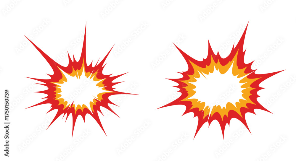 Tableau sur toile Two vibrant explosion effects orange and red isolated on a white background