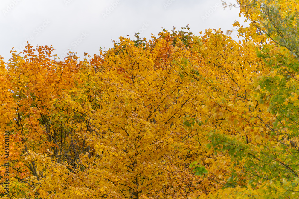 Tableau sur toile Colorful treetops shine in shades of orange, yellow, and green