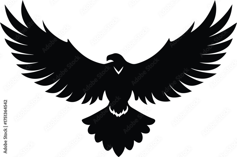 Tableau sur toile Powerful Black Silhouette of a Majestic Bird of Prey with Wings Spread Wide