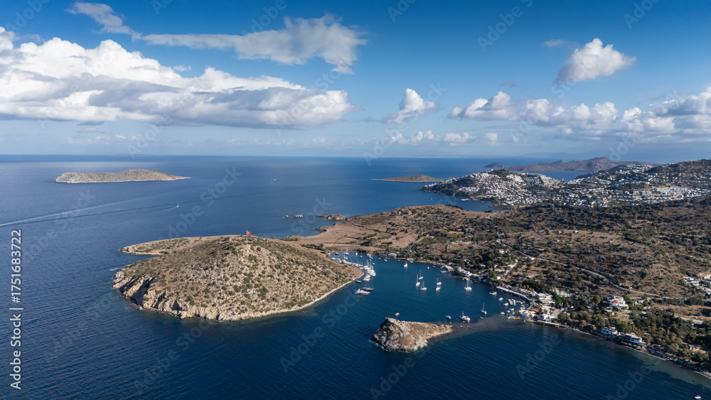 Tableau sur toile Breathtaking View of Gümüşlük Bay with Yachts and Nearby Greek Islands