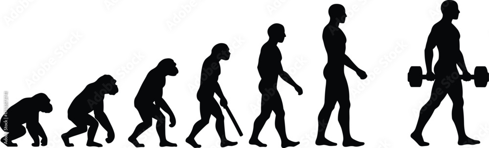Tableau sur toile Human evolution silhouette vector, primate to bodybuilder, fitness progression,